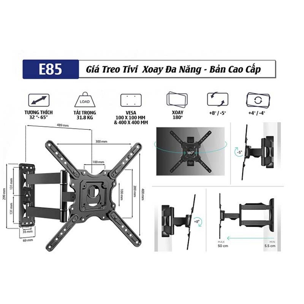 Giá treo tivi xoay đa năng E86 (20-65 inch)