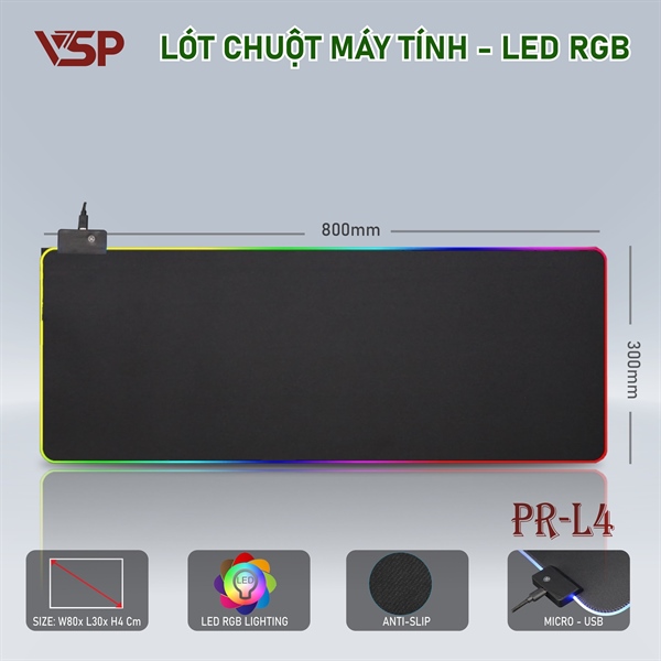 Lót chuột VSP PR-L4 LED RGB tự đổi màu (300 x 800 x 3 mm) – Mouse Pad Gaming