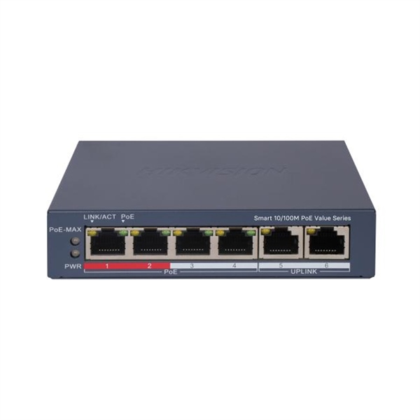 Switch PoE Hikvision DS-3E1106P-EI/M 4 ports + 2 uplink 100Mbps